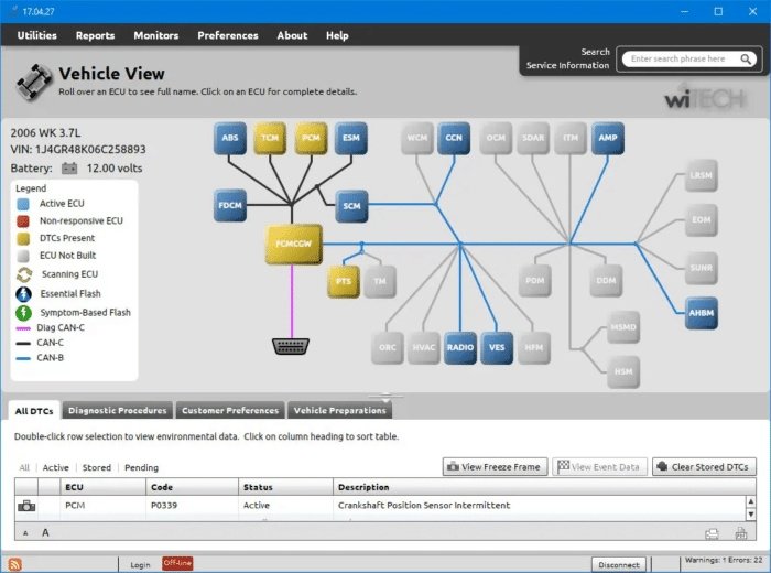 The WiTech Diagnostic System is designed to offer the latest secure wireless technology and significant hardware and software performance improvements over previous Chrysler diagnostic tools. The WiTech Diagnostic App allows simultaneous access to vehicle data and service information.