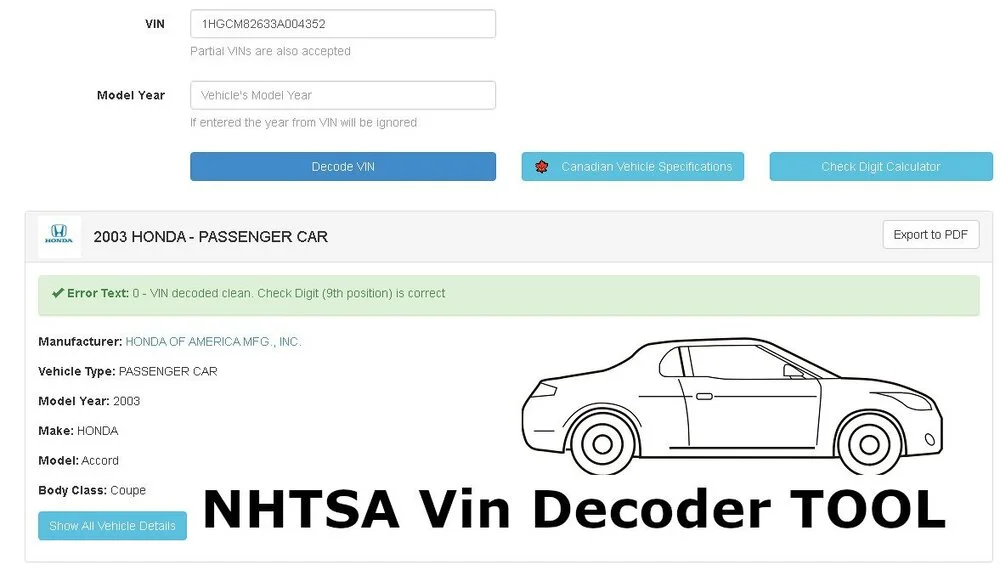 NHTSA Vin Decoder TOOL